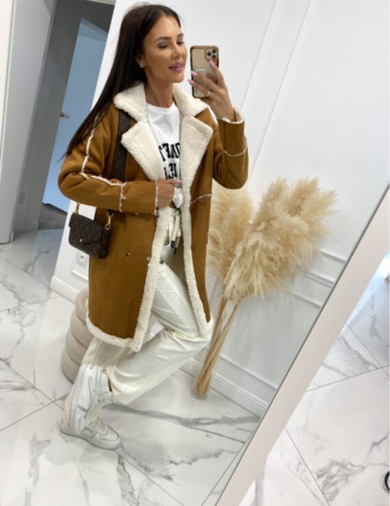 Contrast Double-Breasted Long Sleeve Longline Coat