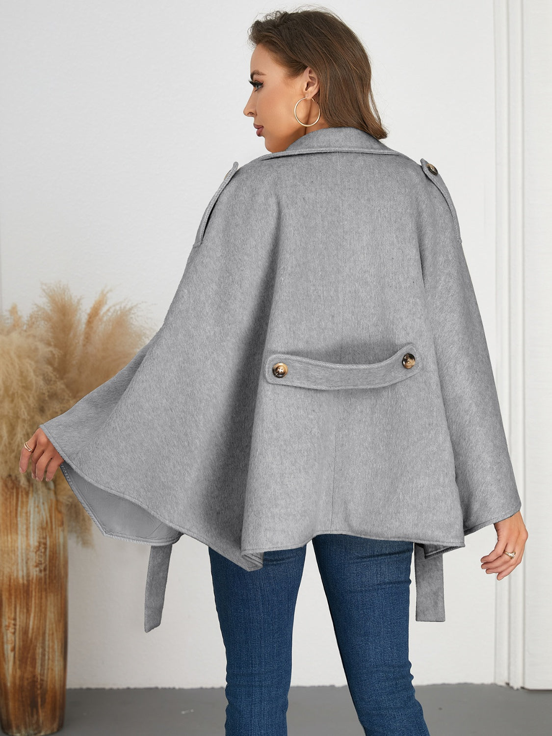 Tags: ACCESSORIES, APPAREL, Beige, buttoned, clothing, clothing accessories, Double-Breasted, gray, H.Y.G@E, Lined, Long Sleeve Ponchos, long sleeves, Outerwear, Ponchos, Ship From Overseas, Tan, tie waist, Tied, Tied Waist, trendsi