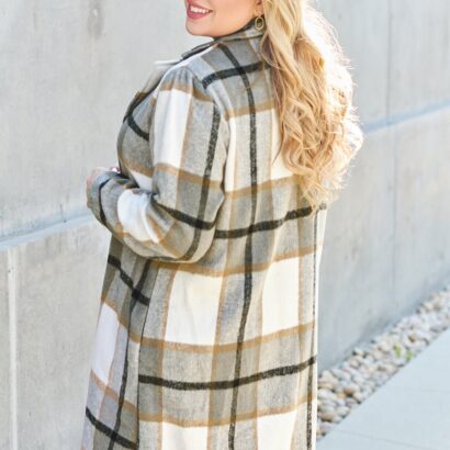 Double Take Full Size Plaid Button Up Lapel Collar Coat