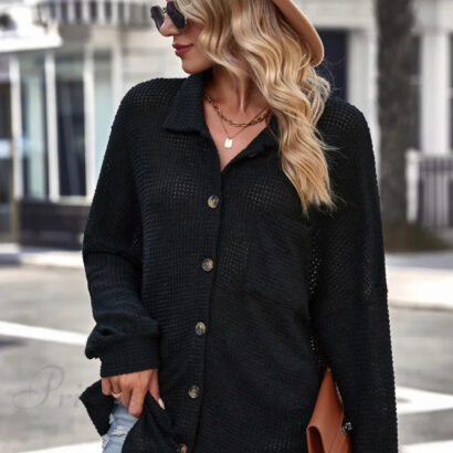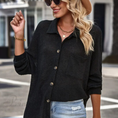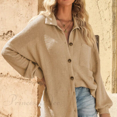 with Blouse Waffle-Knit Dropped Neck Collared Shoulder