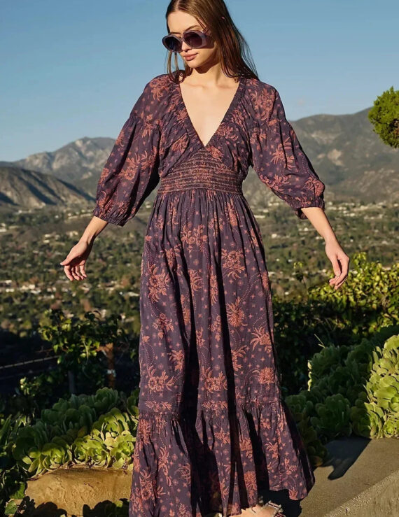 Chiffon Long Sleeve Holiday Floral Boho Dress